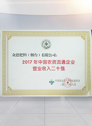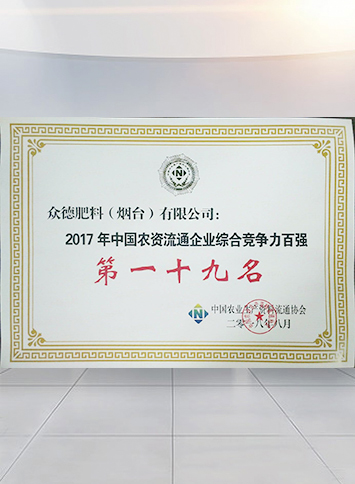 • 2017年中國(guó)農(nóng)資流通企業(yè)綜合競(jìng)爭(zhēng)力百?gòu)?qiáng)第19名